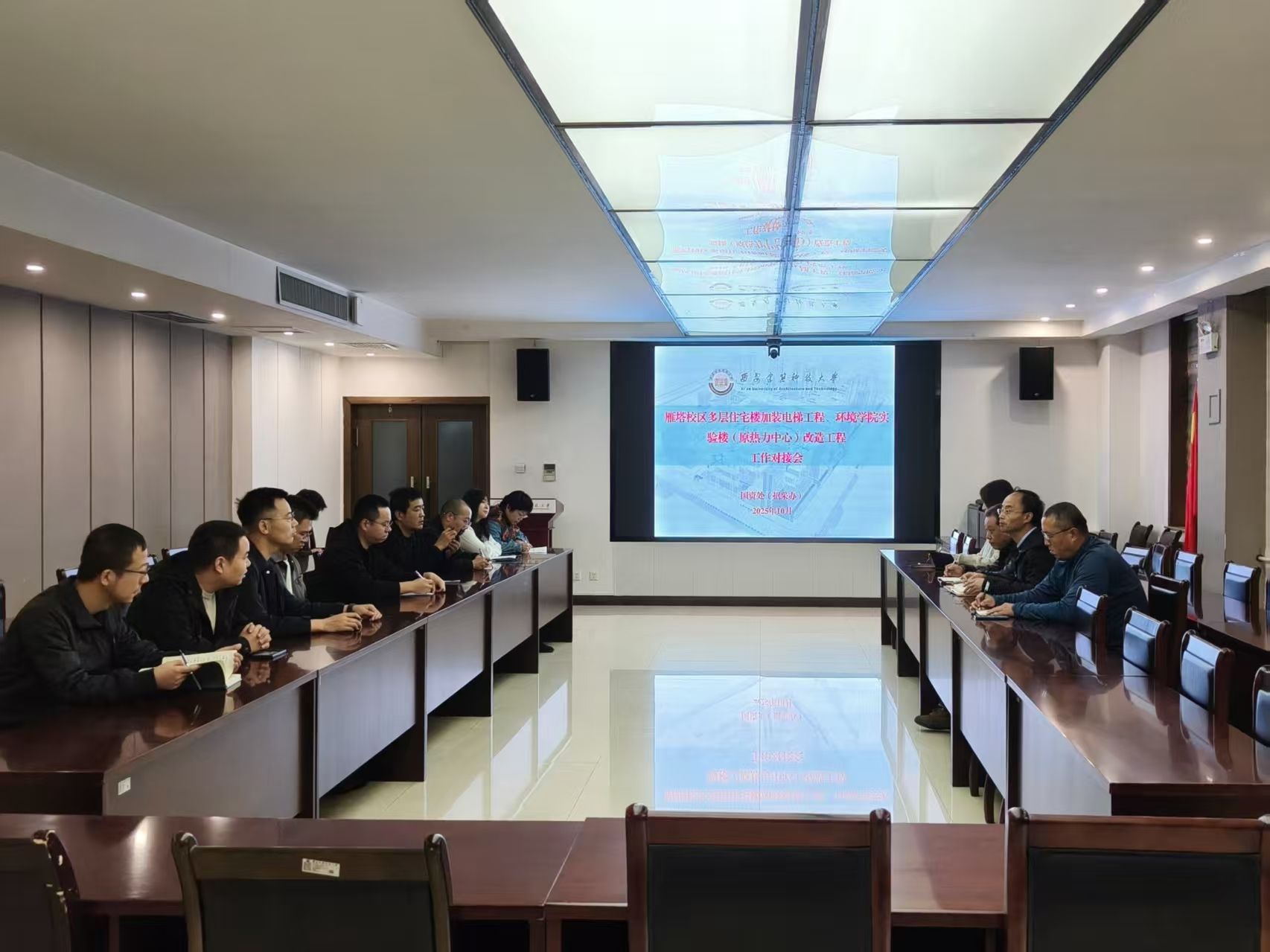 雁塔校区多层住宅楼加装电梯工程、环境学院实验楼(原热力中心)改造工程为2025年度重点项目,对提升学校办学硬件实力、改善教职工居住条件具有重要意义。为确保项目顺利推进,实现建设目标与管理要求,国资处(招采办)于近日组织召开了项目工作交接会议。